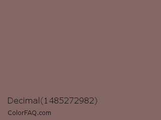 Decimal 1485272982 Color is a normal red color and the nearest color is Sand Dune #826f65. Hex code #826764 and RGB value is rgb(130,103,100). In RGB color space, this color is composed of 51% red, 40% green, 39% blue, In CMYK color space, this color is composed of 0% cyan, 21% magenta, 23% yellow , 49% black , In HSL color space, this color has a hue angle of 6° , 13% saturation and 45% lightness.