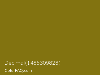 Decimal 1485309828 Color is a dark yellow color and the nearest color is Corn Harvest #8b6b0b. Hex code #827310 and RGB value is rgb(130,115,16). In RGB color space, this color is composed of 51% red, 45% green, 6% blue, In CMYK color space, this color is composed of 0% cyan, 12% magenta, 88% yellow , 49% black , In HSL color space, this color has a hue angle of 52° , 78% saturation and 29% lightness.