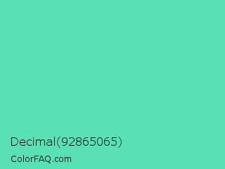 Decimal 92865065 Color is a light green color and the nearest color is Medium Aquamarine #66ddaa. Hex code #59e0b5 and RGB value is rgb(89,224,181). In RGB color space, this color is composed of 35% red, 88% green, 71% blue, In CMYK color space, this color is composed of 60% cyan, 0% magenta, 19% yellow , 12% black , In HSL color space, this color has a hue angle of 161° , 69% saturation and 61% lightness.