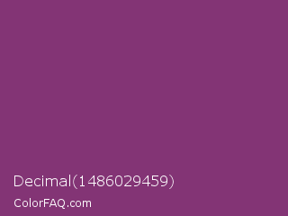 Decimal 1486029459 Color is a normal magenta color and the nearest color is Razzmic Berry Crayola #843179. Hex code #833475 and RGB value is rgb(131,52,117). In RGB color space, this color is composed of 51% red, 20% green, 46% blue, In CMYK color space, this color is composed of 0% cyan, 60% magenta, 11% yellow , 49% black , In HSL color space, this color has a hue angle of 311° , 43% saturation and 36% lightness.