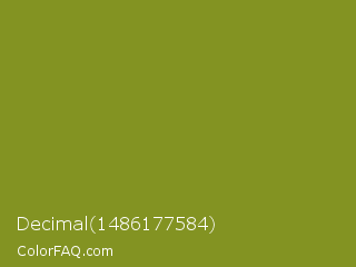 Decimal 1486177584 Color is a normal yellow color and the nearest color is Wasabi #788a25. Hex code #839322 and RGB value is rgb(131,147,34). In RGB color space, this color is composed of 51% red, 58% green, 13% blue, In CMYK color space, this color is composed of 11% cyan, 0% magenta, 77% yellow , 42% black , In HSL color space, this color has a hue angle of 68° , 62% saturation and 35% lightness.