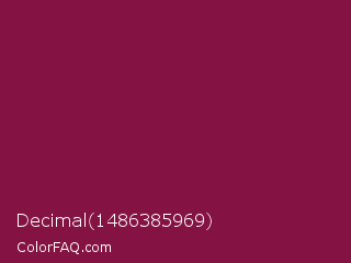 Decimal 1486385969 Color is a dark rose color and the nearest color is Rose Bud Cherry #800b47. Hex code #841343 and RGB value is rgb(132,19,67). In RGB color space, this color is composed of 52% red, 7% green, 26% blue, In CMYK color space, this color is composed of 0% cyan, 86% magenta, 49% yellow , 48% black , In HSL color space, this color has a hue angle of 335° , 75% saturation and 30% lightness.