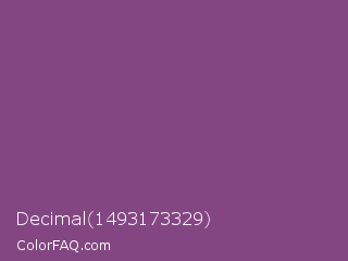 Decimal 1493173329 Color is a normal magenta color and the nearest color is Plum #8e4585. Hex code #844683 and RGB value is rgb(132,70,131). In RGB color space, this color is composed of 52% red, 27% green, 51% blue, In CMYK color space, this color is composed of 0% cyan, 47% magenta, 1% yellow , 48% black , In HSL color space, this color has a hue angle of 301° , 31% saturation and 40% lightness.