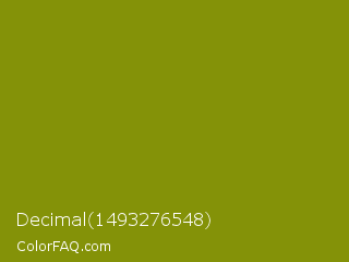 Decimal 1493276548 Color is a dark yellow color and the nearest color is Olive #808000. Hex code #849208 and RGB value is rgb(132,146,8). In RGB color space, this color is composed of 52% red, 57% green, 3% blue, In CMYK color space, this color is composed of 10% cyan, 0% magenta, 95% yellow , 43% black , In HSL color space, this color has a hue angle of 66° , 90% saturation and 30% lightness.