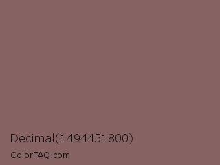 Decimal 1494451800 Color is a normal red color and the nearest color is Deep Taupe #7e5e60. Hex code #866262 and RGB value is rgb(134,98,98). In RGB color space, this color is composed of 53% red, 38% green, 38% blue, In CMYK color space, this color is composed of 0% cyan, 27% magenta, 27% yellow , 47% black , In HSL color space, this color has a hue angle of 0° , 16% saturation and 45% lightness.