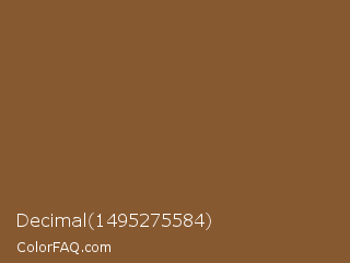 Decimal 1495275584 Color is a normal orange color and the nearest color is Potters Clay #8c5738. Hex code #875930 and RGB value is rgb(135,89,48). In RGB color space, this color is composed of 53% red, 35% green, 19% blue, In CMYK color space, this color is composed of 0% cyan, 34% magenta, 64% yellow , 47% black , In HSL color space, this color has a hue angle of 28° , 48% saturation and 36% lightness.