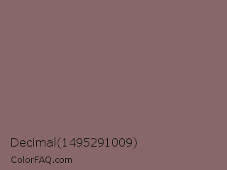 Decimal 1495291009 Color is a normal red color and the nearest color is Sand Dune #826f65. Hex code #876769 and RGB value is rgb(135,103,105). In RGB color space, this color is composed of 53% red, 40% green, 41% blue, In CMYK color space, this color is composed of 0% cyan, 24% magenta, 22% yellow , 47% black , In HSL color space, this color has a hue angle of 356° , 13% saturation and 47% lightness.