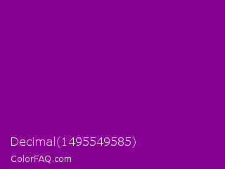 Decimal 1495549585 Color is a dark magenta color and the nearest color is Dark Magenta #8b008b. Hex code #880093 and RGB value is rgb(136,0,147). In RGB color space, this color is composed of 53% red, 0% green, 58% blue, In CMYK color space, this color is composed of 7% cyan, 100% magenta, 0% yellow , 42% black , In HSL color space, this color has a hue angle of 296° , 100% saturation and 29% lightness.