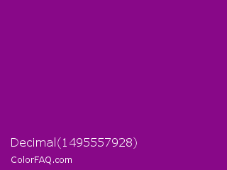 Decimal 1495557928 Color is a dark magenta color and the nearest color is Mardi Gras #880085. Hex code #880888 and RGB value is rgb(136,8,136). In RGB color space, this color is composed of 53% red, 3% green, 53% blue, In CMYK color space, this color is composed of 0% cyan, 94% magenta, 0% yellow , 47% black , In HSL color space, this color has a hue angle of 300° , 89% saturation and 28% lightness.