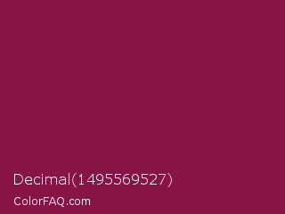 Decimal 1495569527 Color is a dark rose color and the nearest color is Disco #871550. Hex code #881345 and RGB value is rgb(136,19,69). In RGB color space, this color is composed of 53% red, 7% green, 27% blue, In CMYK color space, this color is composed of 0% cyan, 86% magenta, 49% yellow , 47% black , In HSL color space, this color has a hue angle of 334° , 75% saturation and 30% lightness.