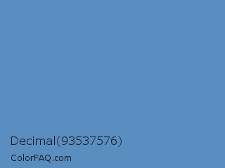 Decimal 93537576 Color is a normal blue color and the nearest color is Silver Lake Blue #5d89ba. Hex code #5a8dc0 and RGB value is rgb(90,141,192). In RGB color space, this color is composed of 35% red, 55% green, 75% blue, In CMYK color space, this color is composed of 53% cyan, 27% magenta, 0% yellow , 25% black , In HSL color space, this color has a hue angle of 210° , 45% saturation and 55% lightness.