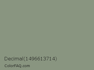 Decimal 1496613714 Color is a normal green color and the nearest color is Artichoke #8f9779. Hex code #899580 and RGB value is rgb(137,149,128). In RGB color space, this color is composed of 54% red, 58% green, 50% blue, In CMYK color space, this color is composed of 8% cyan, 0% magenta, 14% yellow , 42% black , In HSL color space, this color has a hue angle of 94° , 9% saturation and 54% lightness.