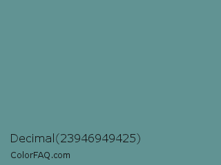 Decimal 23946949425 Color is a normal cyan color and the nearest color is Patina #639a8f. Hex code #619393 and RGB value is rgb(97,147,147). In RGB color space, this color is composed of 38% red, 58% green, 58% blue, In CMYK color space, this color is composed of 34% cyan, 0% magenta, 0% yellow , 42% black , In HSL color space, this color has a hue angle of 180° , 20% saturation and 48% lightness.