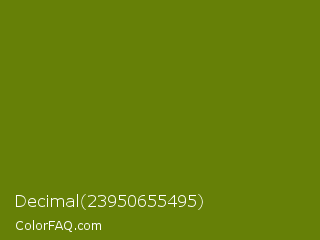 Decimal 23950655495 Color is a dark lime color and the nearest color is Avocado #568203. Hex code #668007 and RGB value is rgb(102,128,7). In RGB color space, this color is composed of 40% red, 50% green, 3% blue, In CMYK color space, this color is composed of 20% cyan, 0% magenta, 95% yellow , 50% black , In HSL color space, this color has a hue angle of 73° , 90% saturation and 26% lightness.