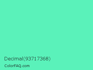 Decimal 93717368 Color is a light green color and the nearest color is Medium Aquamarine #66ddaa. Hex code #5af2ba and RGB value is rgb(90,242,186). In RGB color space, this color is composed of 35% red, 95% green, 73% blue, In CMYK color space, this color is composed of 63% cyan, 0% magenta, 23% yellow , 5% black , In HSL color space, this color has a hue angle of 158° , 85% saturation and 65% lightness.