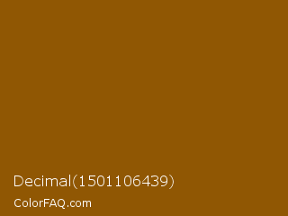 Decimal 1501106439 Color is a dark orange color and the nearest color is Rusty Nail #86560a. Hex code #905703 and RGB value is rgb(144,87,3). In RGB color space, this color is composed of 56% red, 34% green, 1% blue, In CMYK color space, this color is composed of 0% cyan, 40% magenta, 98% yellow , 44% black , In HSL color space, this color has a hue angle of 36° , 96% saturation and 29% lightness.