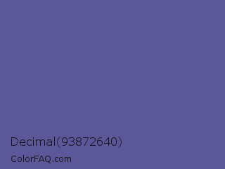 Decimal 93872640 Color is a normal indigo color and the nearest color is Butterfly Bush #624e9a. Hex code #5b5798 and RGB value is rgb(91,87,152). In RGB color space, this color is composed of 36% red, 34% green, 60% blue, In CMYK color space, this color is composed of 40% cyan, 43% magenta, 0% yellow , 40% black , In HSL color space, this color has a hue angle of 244° , 27% saturation and 47% lightness.