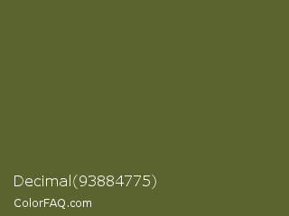 Decimal 93884775 Color is a dark yellow color and the nearest color is Costa Del Sol #615d30. Hex code #5b632f and RGB value is rgb(91,99,47). In RGB color space, this color is composed of 36% red, 39% green, 18% blue, In CMYK color space, this color is composed of 8% cyan, 0% magenta, 53% yellow , 61% black , In HSL color space, this color has a hue angle of 69° , 36% saturation and 29% lightness.