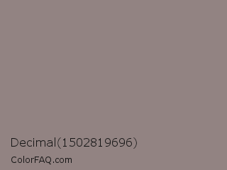 Decimal 1502819696 Color is a normal red color and the nearest color is Natural Gray #8b8680. Hex code #928382 and RGB value is rgb(146,131,130). In RGB color space, this color is composed of 57% red, 51% green, 51% blue, In CMYK color space, this color is composed of 0% cyan, 10% magenta, 11% yellow , 43% black , In HSL color space, this color has a hue angle of 4° , 7% saturation and 54% lightness.