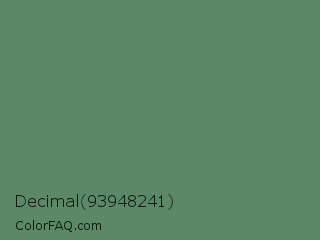 Decimal 93948241 Color is a normal green color and the nearest color is Spring Leaves #578363. Hex code #5b8967 and RGB value is rgb(91,137,103). In RGB color space, this color is composed of 36% red, 54% green, 40% blue, In CMYK color space, this color is composed of 34% cyan, 0% magenta, 25% yellow , 46% black , In HSL color space, this color has a hue angle of 136° , 20% saturation and 45% lightness.