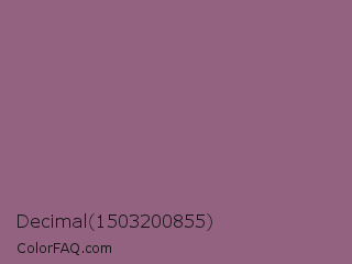 Decimal 1503200855 Color is a normal magenta color and the nearest color is Strikemaster #956387. Hex code #936281 and RGB value is rgb(147,98,129). In RGB color space, this color is composed of 58% red, 38% green, 51% blue, In CMYK color space, this color is composed of 0% cyan, 33% magenta, 12% yellow , 42% black , In HSL color space, this color has a hue angle of 322° , 20% saturation and 48% lightness.