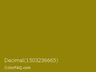 Decimal 1503236665 Color is a dark yellow color and the nearest color is Dark Yellow #9b870c. Hex code #938407 and RGB value is rgb(147,132,7). In RGB color space, this color is composed of 58% red, 52% green, 3% blue, In CMYK color space, this color is composed of 0% cyan, 10% magenta, 95% yellow , 42% black , In HSL color space, this color has a hue angle of 54° , 91% saturation and 30% lightness.