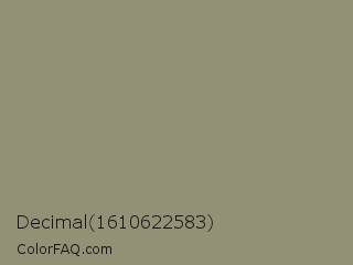 Decimal 1610622583 Color is a normal yellow color and the nearest color is Pale Oyster #988d77. Hex code #939175 and RGB value is rgb(147,145,117). In RGB color space, this color is composed of 58% red, 57% green, 46% blue, In CMYK color space, this color is composed of 0% cyan, 1% magenta, 20% yellow , 42% black , In HSL color space, this color has a hue angle of 56° , 12% saturation and 52% lightness.