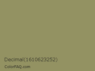 Decimal 1610623252 Color is a normal yellow color and the nearest color is Avocado Pulp #888d65. Hex code #939262 and RGB value is rgb(147,146,98). In RGB color space, this color is composed of 58% red, 57% green, 38% blue, In CMYK color space, this color is composed of 0% cyan, 1% magenta, 33% yellow , 42% black , In HSL color space, this color has a hue angle of 59° , 20% saturation and 48% lightness.