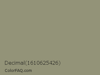 Decimal 1610625426 Color is a normal yellow color and the nearest color is Artichoke #8f9779. Hex code #939378 and RGB value is rgb(147,147,120). In RGB color space, this color is composed of 58% red, 58% green, 47% blue, In CMYK color space, this color is composed of 0% cyan, 0% magenta, 18% yellow , 42% black , In HSL color space, this color has a hue angle of 60° , 11% saturation and 52% lightness.
