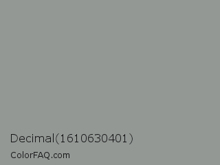 Decimal 1610630401 Color is a normal green color and the nearest color is Mountain Mist #959396. Hex code #939895 and RGB value is rgb(147,152,149). In RGB color space, this color is composed of 58% red, 60% green, 58% blue, In CMYK color space, this color is composed of 3% cyan, 0% magenta, 2% yellow , 40% black , In HSL color space, this color has a hue angle of 144° , 2% saturation and 59% lightness.