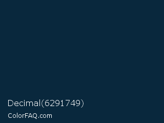 Decimal 6291749 Color is a very dark blue color and the nearest color is Big Stone #162a40. Hex code #09283d and RGB value is rgb(9,40,61). In RGB color space, this color is composed of 4% red, 16% green, 24% blue, In CMYK color space, this color is composed of 85% cyan, 34% magenta, 0% yellow , 76% black , In HSL color space, this color has a hue angle of 204° , 74% saturation and 14% lightness.
