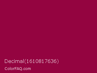 Decimal 1610817636 Color is a dark rose color and the nearest color is Pink Raspberry #980036. Hex code #940440 and RGB value is rgb(148,4,64). In RGB color space, this color is composed of 58% red, 2% green, 25% blue, In CMYK color space, this color is composed of 0% cyan, 97% magenta, 57% yellow , 42% black , In HSL color space, this color has a hue angle of 335° , 95% saturation and 30% lightness.