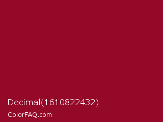 Decimal 1610822432 Color is a normal red color and the nearest color is Paprika #8d0226. Hex code #940928 and RGB value is rgb(148,9,40). In RGB color space, this color is composed of 58% red, 4% green, 16% blue, In CMYK color space, this color is composed of 0% cyan, 94% magenta, 73% yellow , 42% black , In HSL color space, this color has a hue angle of 347° , 89% saturation and 31% lightness.
