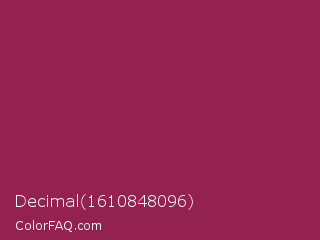 Decimal 1610848096 Color is a normal rose color and the nearest color is Dark Raspberry #872657. Hex code #942250 and RGB value is rgb(148,34,80). In RGB color space, this color is composed of 58% red, 13% green, 31% blue, In CMYK color space, this color is composed of 0% cyan, 77% magenta, 46% yellow , 42% black , In HSL color space, this color has a hue angle of 336° , 63% saturation and 36% lightness.