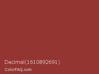 Decimal 1610892691 Color is a normal red color and the nearest color is Stiletto #9c3336. Hex code #943531 and RGB value is rgb(148,53,49). In RGB color space, this color is composed of 58% red, 21% green, 19% blue, In CMYK color space, this color is composed of 0% cyan, 64% magenta, 67% yellow , 42% black , In HSL color space, this color has a hue angle of 2° , 50% saturation and 39% lightness.