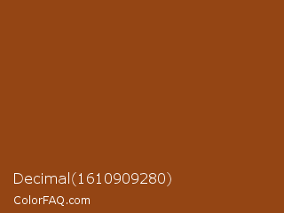 Decimal 1610909280 Color is a normal orange color and the nearest color is Saddle Brown #8b4513. Hex code #944514 and RGB value is rgb(148,69,20). In RGB color space, this color is composed of 58% red, 27% green, 8% blue, In CMYK color space, this color is composed of 0% cyan, 53% magenta, 86% yellow , 42% black , In HSL color space, this color has a hue angle of 23° , 76% saturation and 33% lightness.