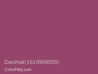 Decimal 1610909509 Color is a normal rose color and the nearest color is Twilight Lavender #8a496b. Hex code #944569 and RGB value is rgb(148,69,105). In RGB color space, this color is composed of 58% red, 27% green, 41% blue, In CMYK color space, this color is composed of 0% cyan, 53% magenta, 29% yellow , 42% black , In HSL color space, this color has a hue angle of 333° , 36% saturation and 43% lightness.