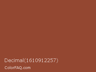Decimal 1610912257 Color is a normal red color and the nearest color is Chestnut #954535. Hex code #944731 and RGB value is rgb(148,71,49). In RGB color space, this color is composed of 58% red, 28% green, 19% blue, In CMYK color space, this color is composed of 0% cyan, 52% magenta, 67% yellow , 42% black , In HSL color space, this color has a hue angle of 13° , 50% saturation and 39% lightness.