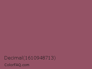 Decimal 1610948713 Color is a normal rose color and the nearest color is Rose Taupe #905d5d. Hex code #945265 and RGB value is rgb(148,82,101). In RGB color space, this color is composed of 58% red, 32% green, 40% blue, In CMYK color space, this color is composed of 0% cyan, 45% magenta, 32% yellow , 42% black , In HSL color space, this color has a hue angle of 343° , 29% saturation and 45% lightness.