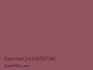 Decimal 1610950708 Color is a normal red color and the nearest color is Rose Taupe #905d5d. Hex code #945562 and RGB value is rgb(148,85,98). In RGB color space, this color is composed of 58% red, 33% green, 38% blue, In CMYK color space, this color is composed of 0% cyan, 43% magenta, 34% yellow , 42% black , In HSL color space, this color has a hue angle of 348° , 27% saturation and 46% lightness.