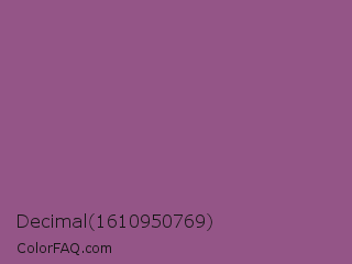 Decimal 1610950769 Color is a normal magenta color and the nearest color is Antique Fuchsia #915c83. Hex code #945587 and RGB value is rgb(148,85,135). In RGB color space, this color is composed of 58% red, 33% green, 53% blue, In CMYK color space, this color is composed of 0% cyan, 43% magenta, 9% yellow , 42% black , In HSL color space, this color has a hue angle of 312° , 27% saturation and 46% lightness.