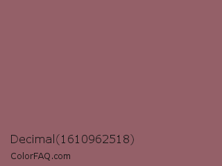 Decimal 1610962518 Color is a normal red color and the nearest color is Mauve Taupe #915f6d. Hex code #946068 and RGB value is rgb(148,96,104). In RGB color space, this color is composed of 58% red, 38% green, 41% blue, In CMYK color space, this color is composed of 0% cyan, 35% magenta, 30% yellow , 42% black , In HSL color space, this color has a hue angle of 351° , 21% saturation and 48% lightness.