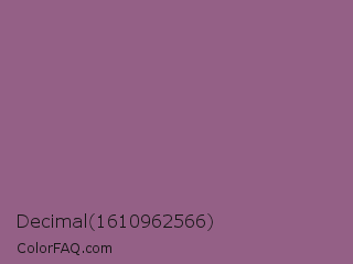 Decimal 1610962566 Color is a normal magenta color and the nearest color is Strikemaster #956387. Hex code #946086 and RGB value is rgb(148,96,134). In RGB color space, this color is composed of 58% red, 38% green, 53% blue, In CMYK color space, this color is composed of 0% cyan, 35% magenta, 9% yellow , 42% black , In HSL color space, this color has a hue angle of 316° , 21% saturation and 48% lightness.