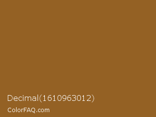 Decimal 1610963012 Color is a normal orange color and the nearest color is Kumera #886221. Hex code #946124 and RGB value is rgb(148,97,36). In RGB color space, this color is composed of 58% red, 38% green, 14% blue, In CMYK color space, this color is composed of 0% cyan, 34% magenta, 76% yellow , 42% black , In HSL color space, this color has a hue angle of 33° , 61% saturation and 36% lightness.
