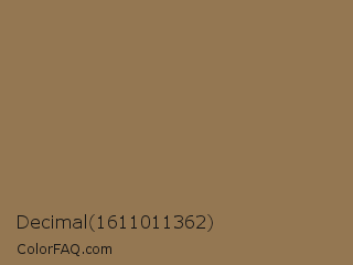Decimal 1611011362 Color is a normal orange color and the nearest color is Pale Brown #987654. Hex code #947752 and RGB value is rgb(148,119,82). In RGB color space, this color is composed of 58% red, 47% green, 32% blue, In CMYK color space, this color is composed of 0% cyan, 20% magenta, 45% yellow , 42% black , In HSL color space, this color has a hue angle of 34° , 29% saturation and 45% lightness.