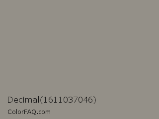 Decimal 1611037046 Color is a normal orange color and the nearest color is Stack #8a8f8a. Hex code #949088 and RGB value is rgb(148,144,136). In RGB color space, this color is composed of 58% red, 56% green, 53% blue, In CMYK color space, this color is composed of 0% cyan, 3% magenta, 8% yellow , 42% black , In HSL color space, this color has a hue angle of 40° , 5% saturation and 56% lightness.