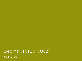 Decimal 1611040882 Color is a normal yellow color and the nearest color is Dark Yellow #9b870c. Hex code #949408 and RGB value is rgb(148,148,8). In RGB color space, this color is composed of 58% red, 58% green, 3% blue, In CMYK color space, this color is composed of 0% cyan, 0% magenta, 95% yellow , 42% black , In HSL color space, this color has a hue angle of 60° , 90% saturation and 31% lightness.
