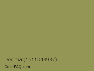 Decimal 1611043937 Color is a normal yellow color and the nearest color is Moss Green #8a9a5b. Hex code #949655 and RGB value is rgb(148,150,85). In RGB color space, this color is composed of 58% red, 59% green, 33% blue, In CMYK color space, this color is composed of 1% cyan, 0% magenta, 43% yellow , 41% black , In HSL color space, this color has a hue angle of 62° , 28% saturation and 46% lightness.