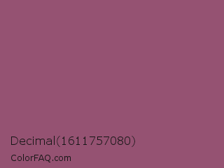 Decimal 1611757080 Color is a normal rose color and the nearest color is Sugar Plum #914e75. Hex code #955272 and RGB value is rgb(149,82,114). In RGB color space, this color is composed of 58% red, 32% green, 45% blue, In CMYK color space, this color is composed of 0% cyan, 45% magenta, 23% yellow , 42% black , In HSL color space, this color has a hue angle of 331° , 29% saturation and 45% lightness.