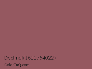 Decimal 1611764022 Color is a normal red color and the nearest color is Rose Taupe #905d5d. Hex code #955860 and RGB value is rgb(149,88,96). In RGB color space, this color is composed of 58% red, 35% green, 38% blue, In CMYK color space, this color is composed of 0% cyan, 41% magenta, 36% yellow , 42% black , In HSL color space, this color has a hue angle of 352° , 26% saturation and 46% lightness.